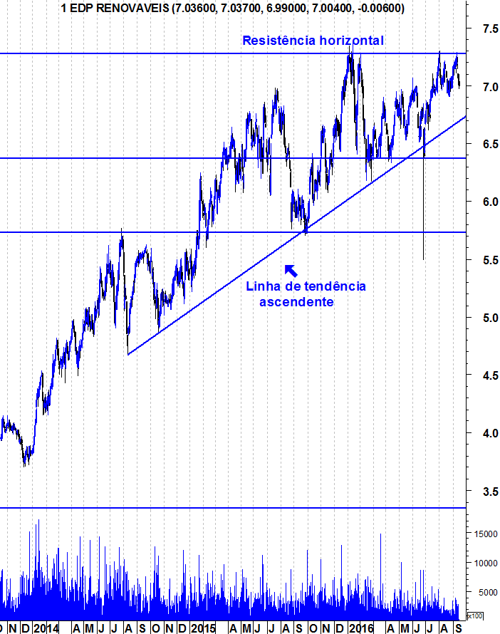 Estamos perante uma cotada que, até prova em contrário, se mantém em BULL... respeitando quase milimetricamente um canal ascendente.