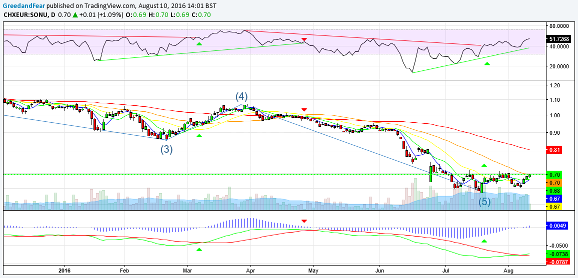 Na AT da Sonae tudo leva a crer na possibilidade de breakout. O MACD cruzou dum nivel muito baixo, O RSI não está overbought e continua a subir, apanhamos as médias movéis de 1 semana, 1 quinzena e 1 mês (e estamos prestes a apanhar a de 2 meses). Anexo Gráfico.