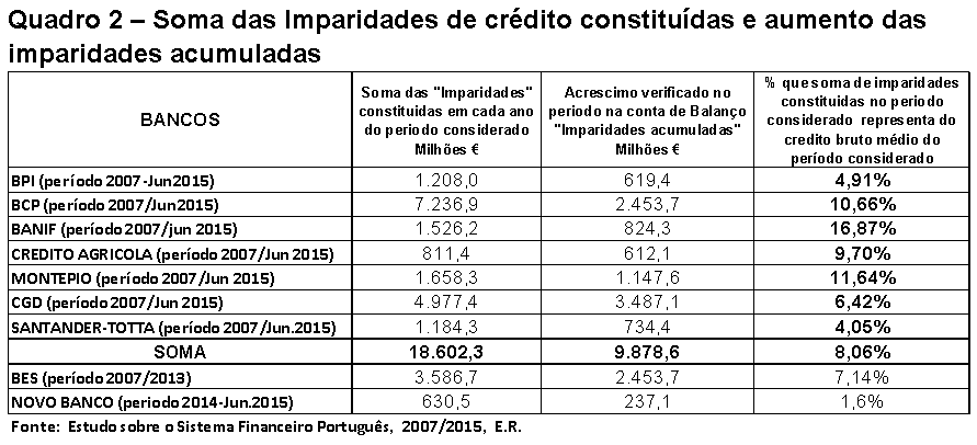 Neste quadro vê-se o enorme esforço que o BCP tem feito até 2015 e continua.... sobre o aprovisionamento de imparidades.