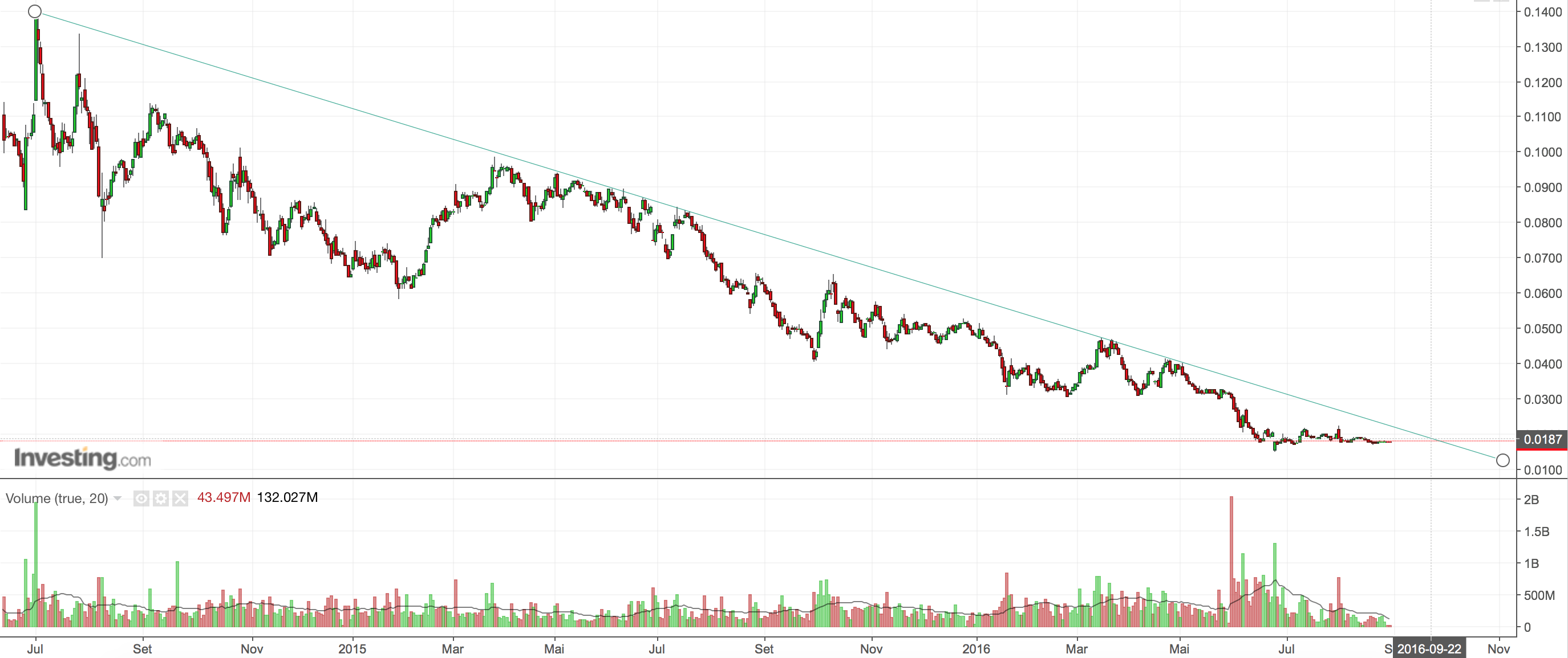 Se continuar a lateralizar, lá para o final do próximo mês vai encontrar a linha de tendência