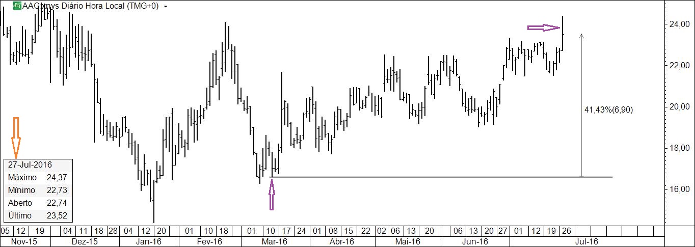 A variação da cotação desde que foi identificado o activo.
