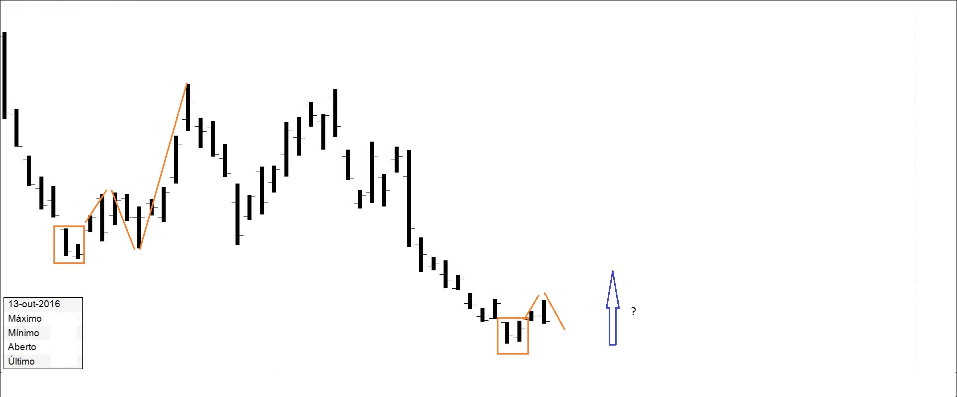 Presente: procurando suporte na resistência. Há quem defenda compras nos suportes.