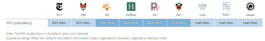 E se ainda assim não gostares, tens o método alternativo das odds das apostas. Curiosamente tem refletido probabilidades surpreendentemente (pelo menos para mim) em linha com os modelos de previsão mais complexos. É um bocado rebuscado dizer-se que os apostador andam feitos com a Hillary