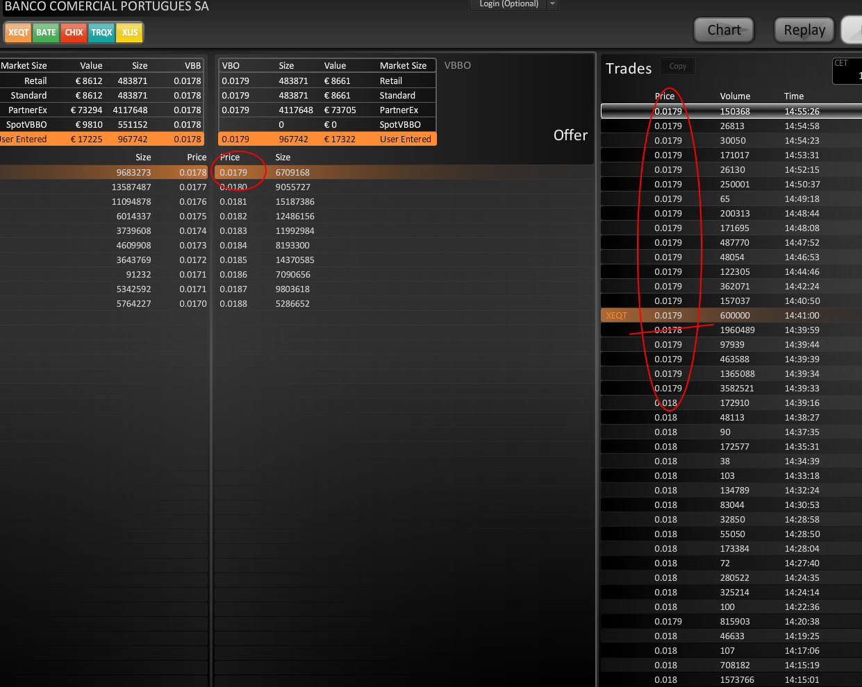 pelo que me apercebo tem havido imensa pressão compradora ao melhor preço, e como vejo isso? as transações são efectuadas ao valor no cof do lado da melhor venda.