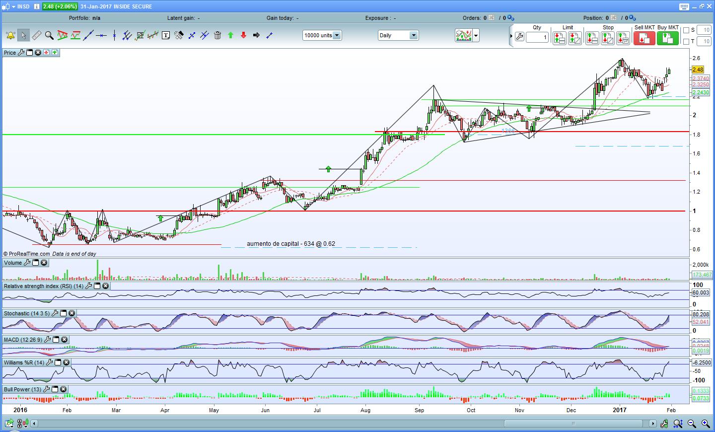 Foi feito um aumento de capital a 0,62 €, como mostra no gráfico, e desde então não tem parado de recuperar.