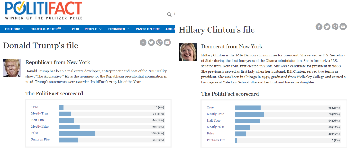 O site politiFact, já premiado com um prémio Pulitez e que é geralmente reconhecido como independente, faz um campeonato de mentiras.