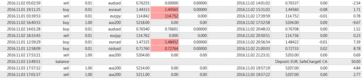 Aqui fica a tabela dos negócios fechados hoje que se saldou num lucro de € 10,57.