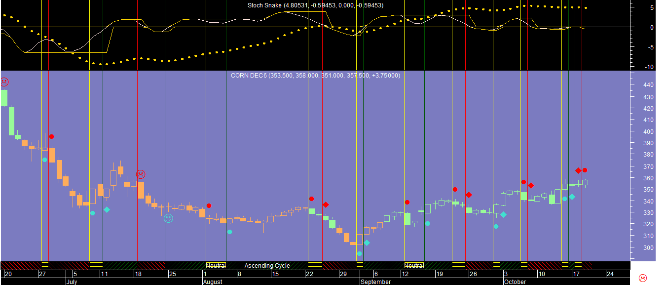 - Fecho das posiçoes anteriormente compradas no Milho. Apesar da subida no final da sessao de hoje o ciclo estocástico parece estar a dar sinal de uma perda de força para alterar o sentido dominante do swing para descendente (ver gráfico). À cautela mais vale ficar de fora a partir de amanha.