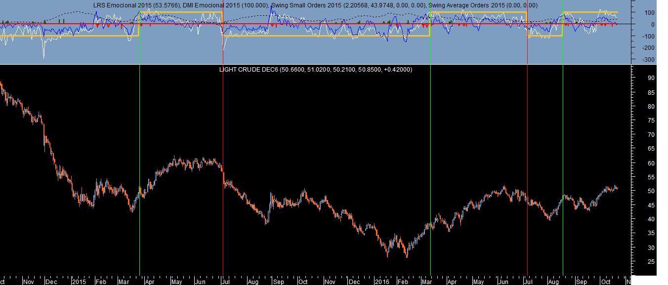 Começando pelas posiçoes compradas no Petróleo, fica um gráfico diário da verificaçao do cálculo da respetiva tendência ascendente: