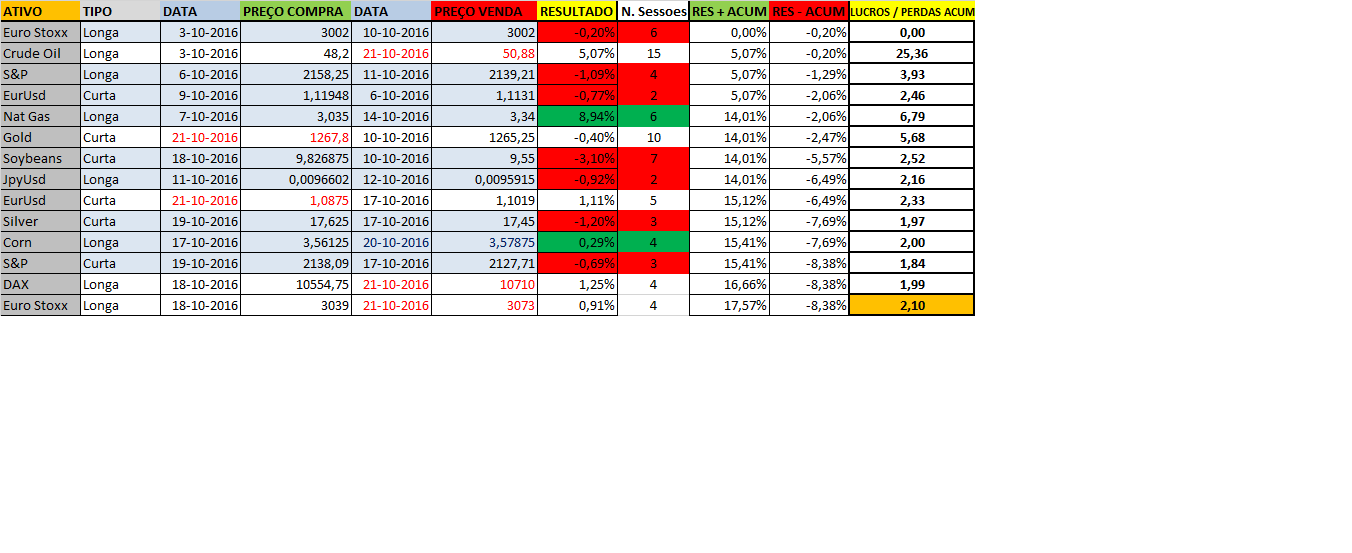- O resto da manada encontra-se neutro: S&P, JpyUSd, Gás Natural, Prata, Milho, Trigo e Soja.