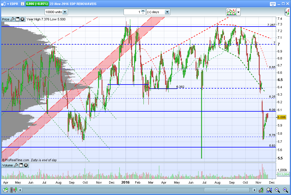 Correcção muito forte na EDPR, mas penso que só haverá motivo para considerar inversão de tendência se tivermos fecho semanal abaixo dos 5,63€, suporte muito importante.