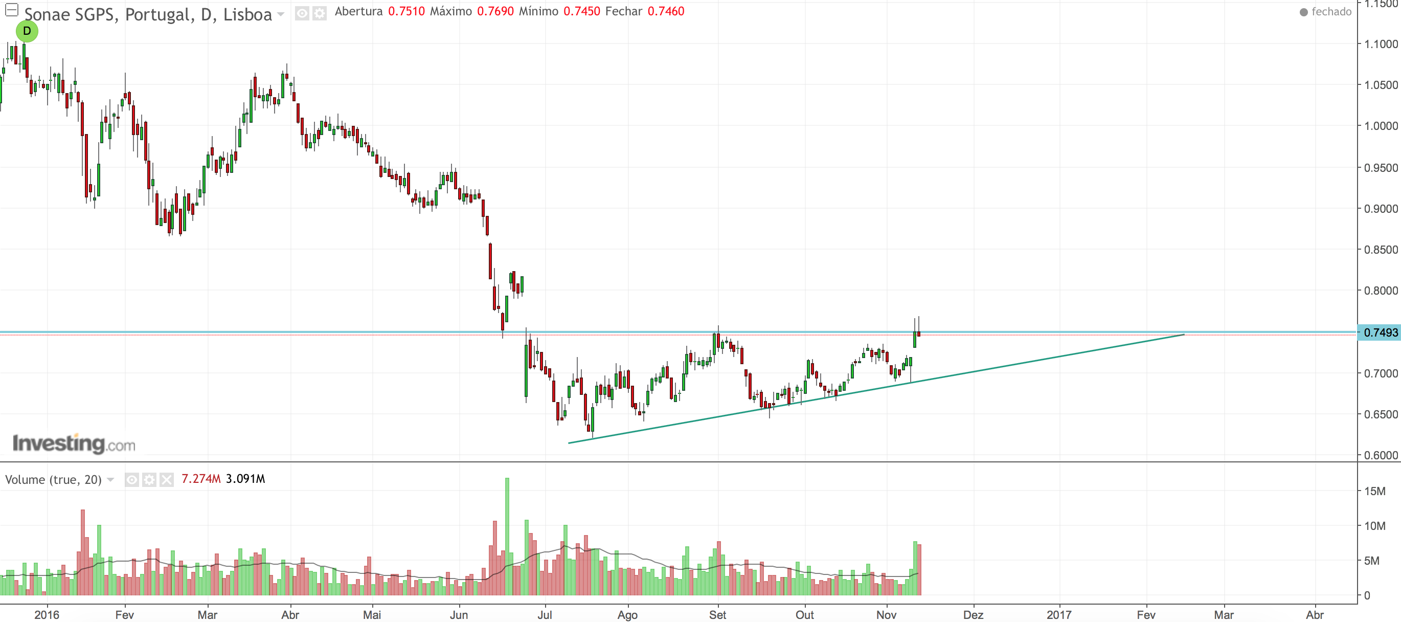 Concordo. É importante que se consiga manter acima dos 0,75€, que pode agora ter virado suporte. Se a semana fechar acima é bom sinal.