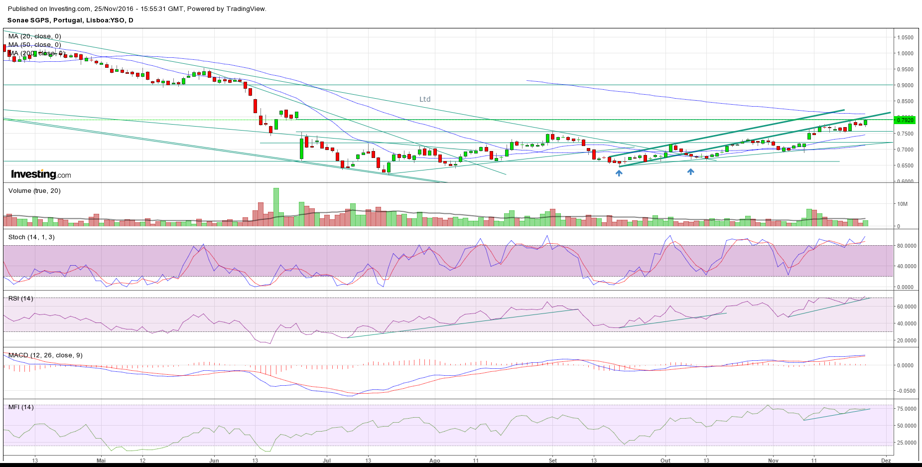 acabo de fechar a minha posição a €0.79 com 9% de mais valia (entrada a 0.725). Desde que iniciou esta subida a 03/11 já vai com 14% de valorização e os indicadores estão um pouco esticados.