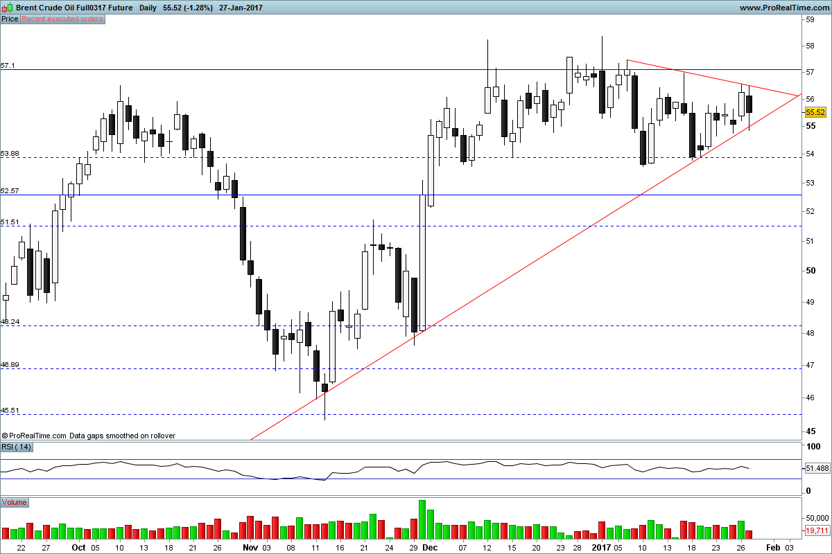 Apesar de concordar plenamente com o anterior post do ovelhaxoné, penso que o brent pode estar na fase final de um H&S com início a 1 de Dezembro, estando neste momento no topo do 2º ombro (gráfico diário). Aguardemos confirmação, se o preço não recuar nesta zona, a figura será invalidada.