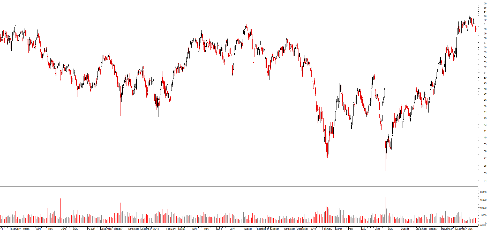 Tocou nos 63€ no inicio de 2017, desde de 2008 que não cotava tão alto. Será que poderá estar lançada esta acção para novos voos?