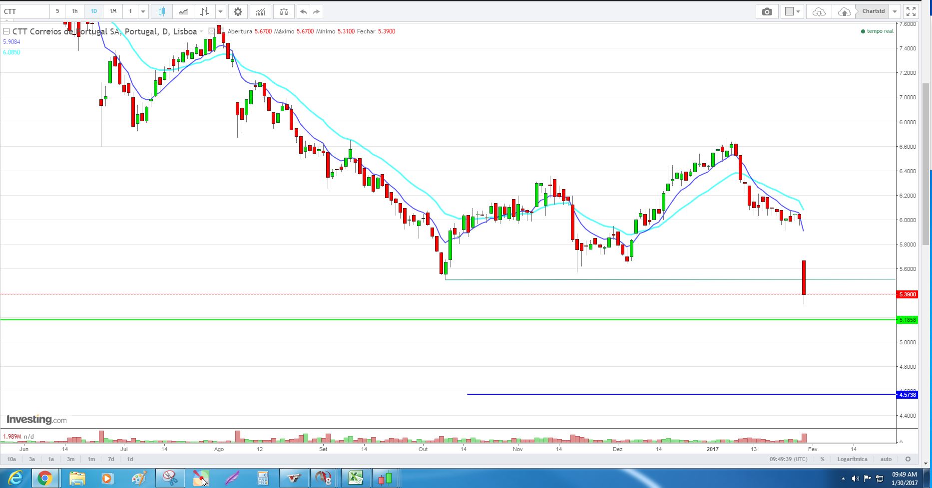 Se por um lado os CTT ( cenário intradia) pode voltar para os 5.48€ por acção , mas numa fotografia mas alargada o preço pode descer para os 5.19 a curto prazo
