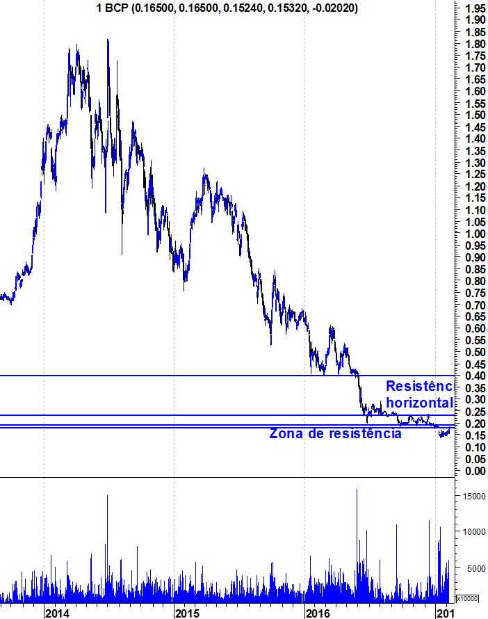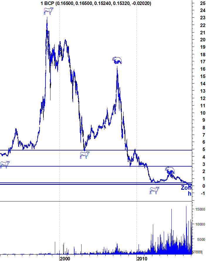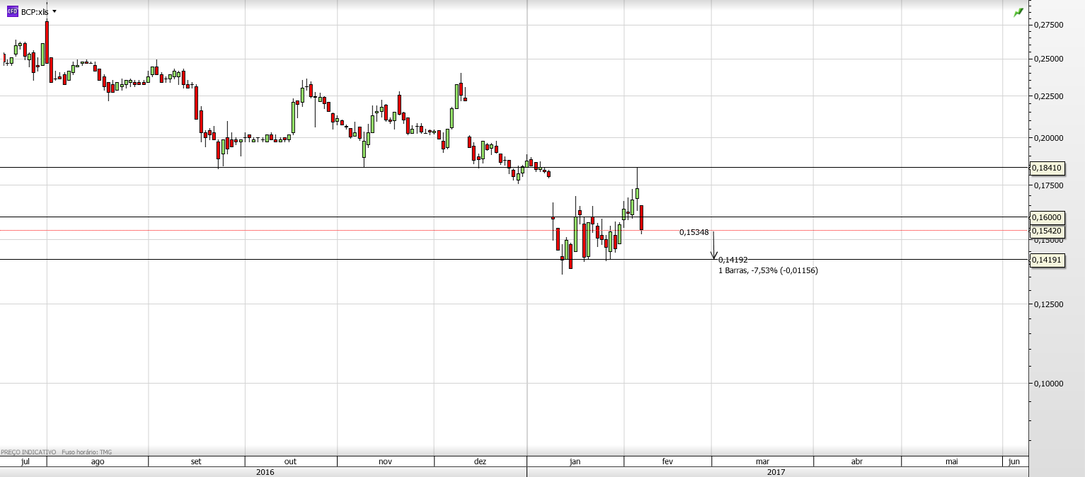 Eu nunca sei como o mercado vai reagir aos acontecimentos. Nem a este nem a outro qualquer. O que eu defino é o que me faz mudar de opinião. Independentemente de tudo o resto. Se houver uma pressão compradora forte e quebrar resistências, não quero saber se é por terem descoberto petróleo no BCP, se é porque os portugueses viraram BCP Lovers ou se o Ronaldo se tornou CEO do Banco. O que me interessa é saber que há força compradora relevante, algo que não acontece há mais de 2 anos. E enquanto isso não suceder, sou coerente com as minhas análises.