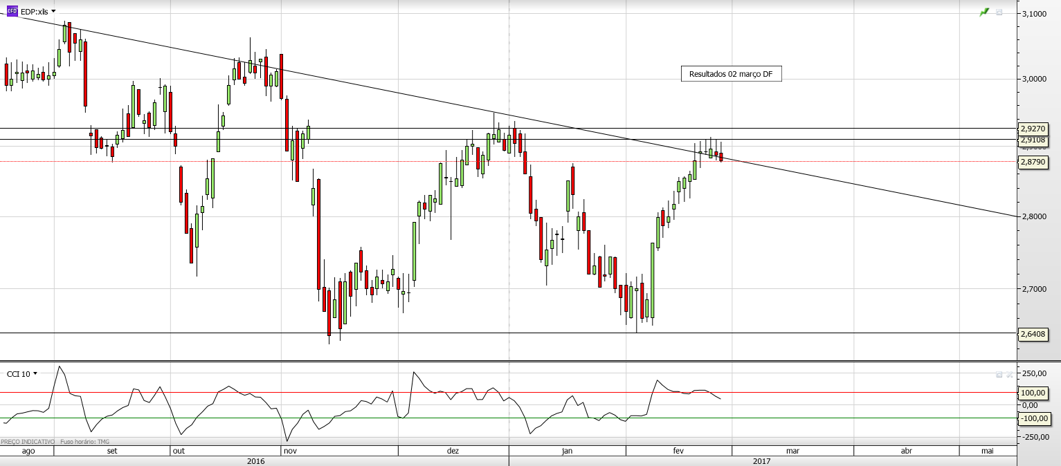 Eu parece-me que o interesse que foi referido, seria para uma entrada curta na EDP. Encontra-se mesmo em cima da linha descendente, por isso tem boas probabilidades de recuar de novo.