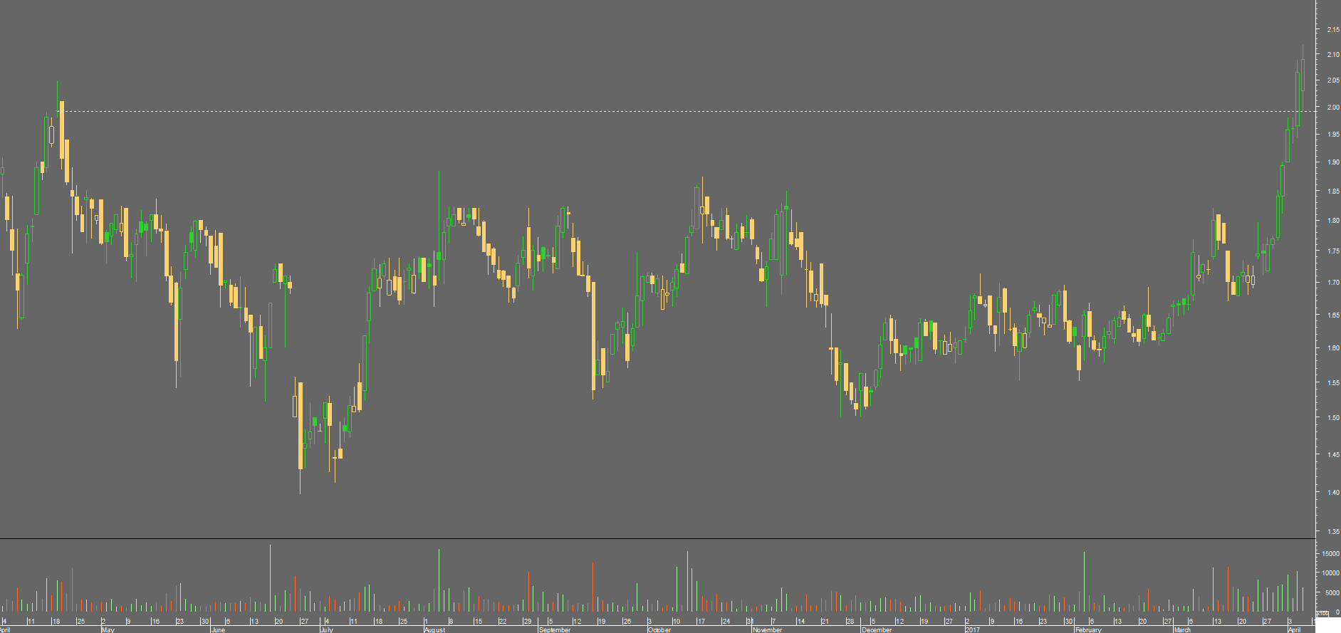 E melhor que ter quebrado os 2 € é o volume enorme com que está...e ainda vai fazer mais umas centenas até ao fecho