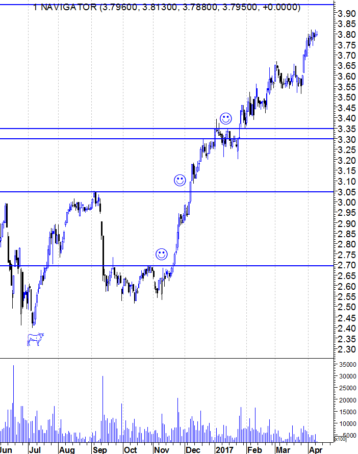 O que há a dizer de um gráfico destes? Um "Bull Market" limpinho como a água. No caso da Navigator, claramente a consolidar depois do arranque de final de Março.