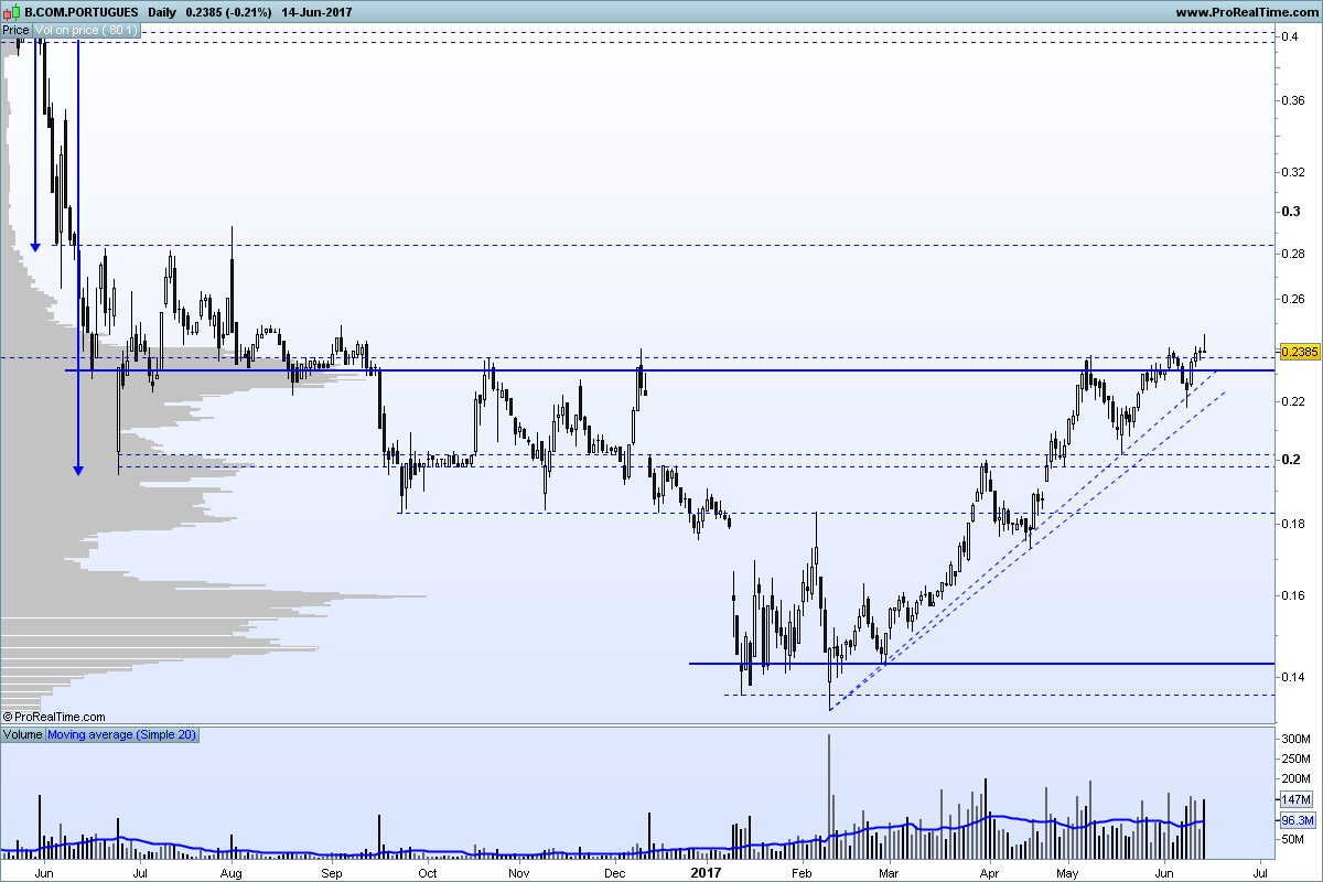 Mas também penso que o não passar agora os 023/0,24 não representa nada para a tendência de médio prazo. Antes do final do ano vamos vê-la na casa dos 0,3... .