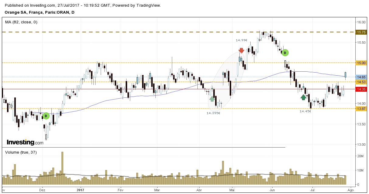 No diário faz um candle vermelho interessante, vem anular o movimento que tem existido desde o dia 26 de Abril.