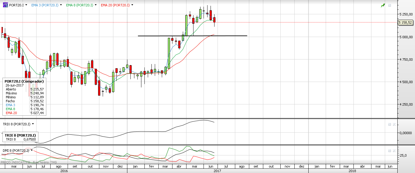 Os suportes são nos 5200, de manhã, passa dos 5200, provavelmente será os 5180, depois provavelmente será 5160, dois dias depois já a resistência provavelmente será nos 5250 e por ai a fora.