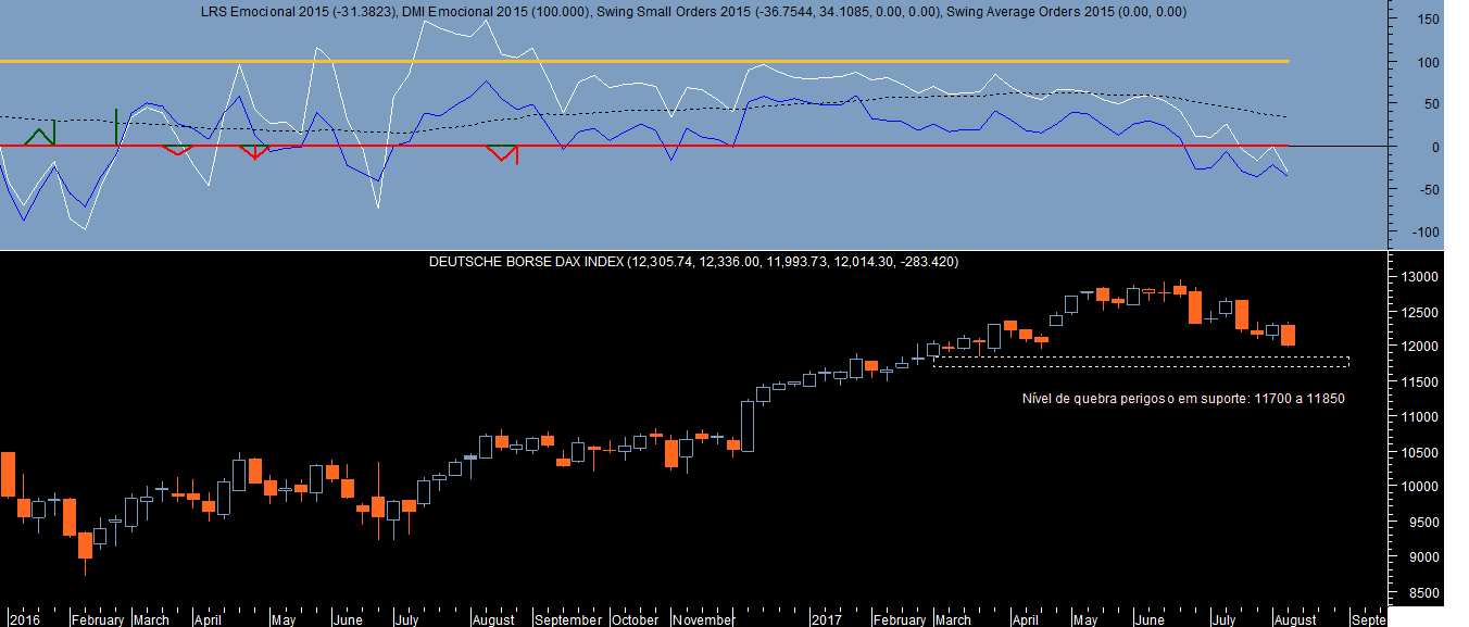 Nenhuma zona de tendência ascendente (verde) verificada ao longo do corrente ano, significativo e estranho apesar do DAX ter subido cerca de 7% até agora em 2017.