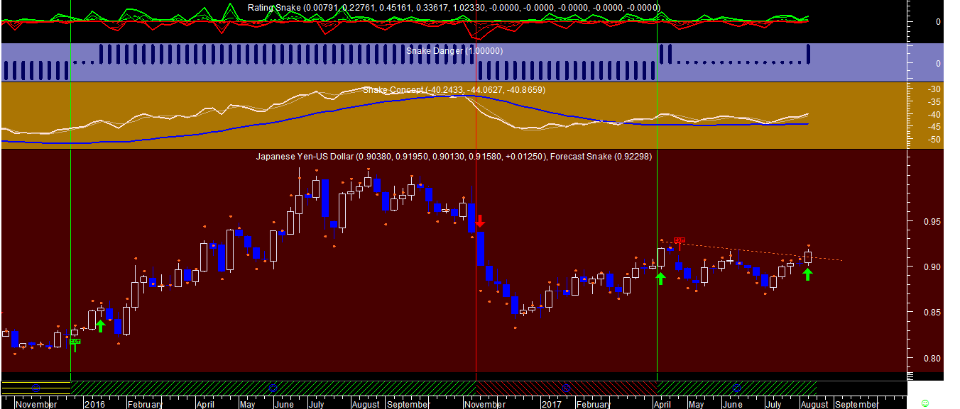 O facto surpreendente foca-se no pormenor de em todo o ano de 2017, seja no gráfico diário como no semanal, os indicadores de definiçao de tendência terem alternado sempre entre fases neutrais (zonas amarelas) e descendentes (zonas vermelhas)!