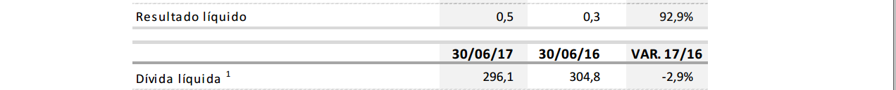"Os resultados consolidados antes de impostos foram de 2,4 milhões de euros, que compara com 0,1 milhões de euros em 2016. O imposto sobre o rendimento cifrou-se em 1,9 milhões de euros é composto essencialmente por impostos correntes a suportar pelas sociedades em Portugal e França", indicou a empresa em comunicado, que adianta ainda que a dívida líquida cifrou-se em 296,1 milhões de euros, uma quebra de 2,9%.