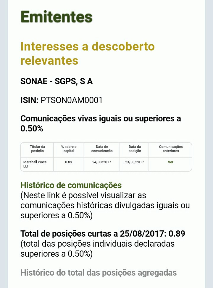 No caso do BCP, o aumento destas posiçoes curtas ate aos atuais 3,7%, refletiu-se na cotaçao, que veio dos 0,25 para o, 0,22