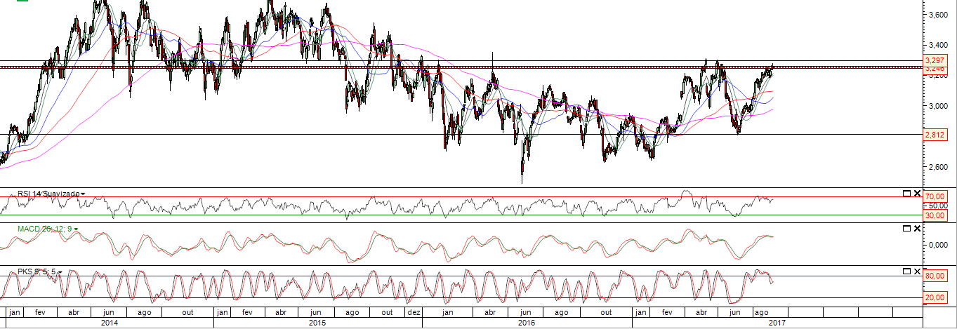 O PSI está numa zona de suporte muito sensível entre 4900 e 5020.