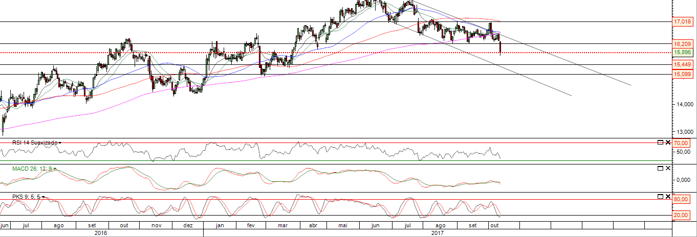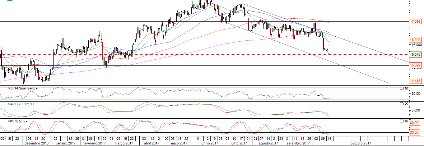 No meu entender é para continuar a descer nos próximos tempos: o semanal apresenta um suporte nos 16.30 EUR (a cerca de 1% do fecho de sexta), com uma descida do RSI a níveis inferiores a 50.