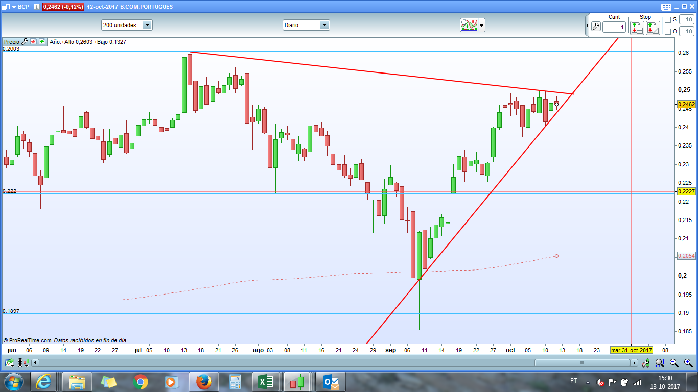 E se passar essa barreira ( que considero forte ) com razoável facilidade, antes do final do ano deverá estar nos 0,30€ tal como penso e já escrevi num post há alguns meses atrás. Caso contrário, vamos andar a moer os 0,245/0,25€ nestes 2 meses e pouco que faltam.