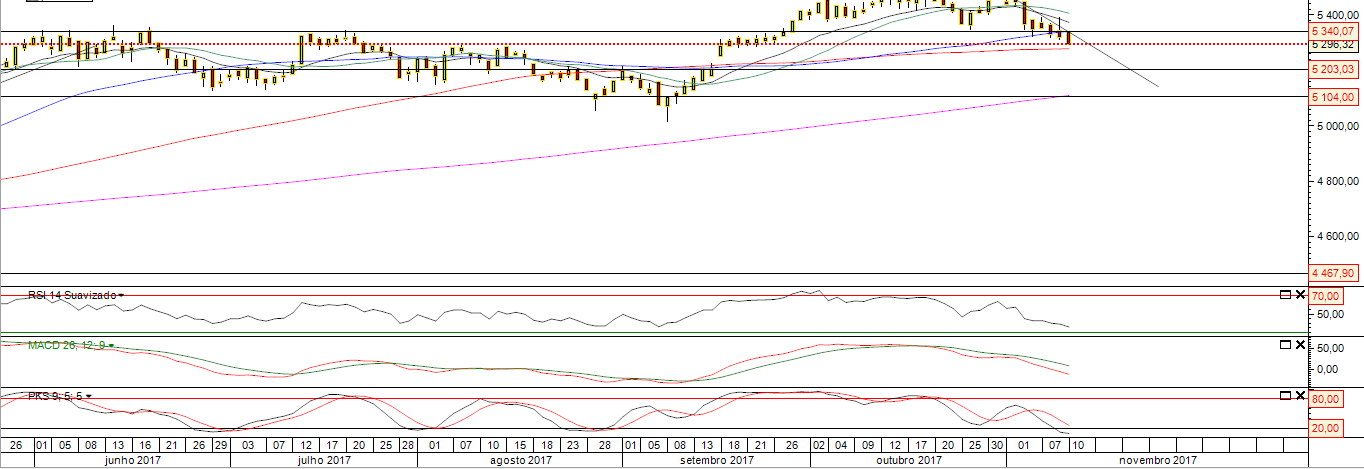 O PSI para já mantem o suporte na zona dos 5320. Zona muito importante para segurar a ida do índice para níveis inferiores .