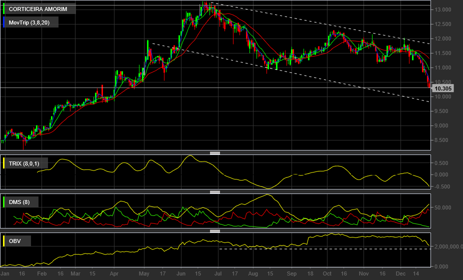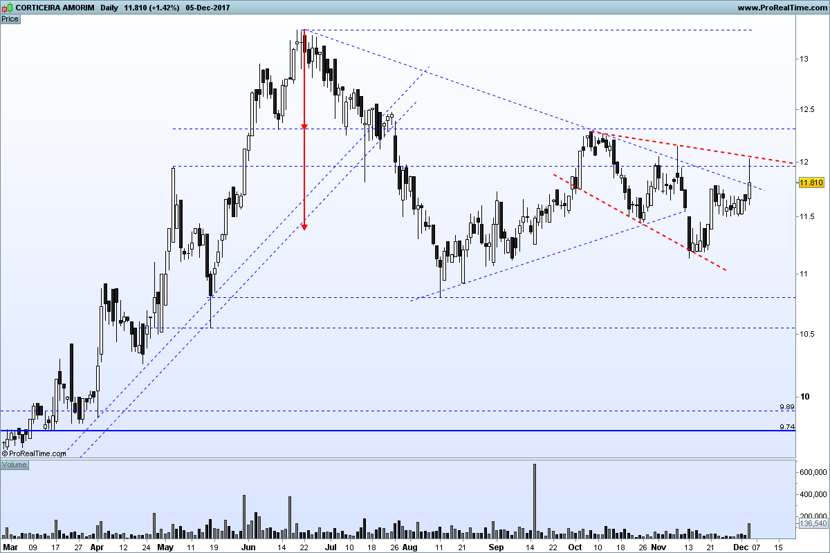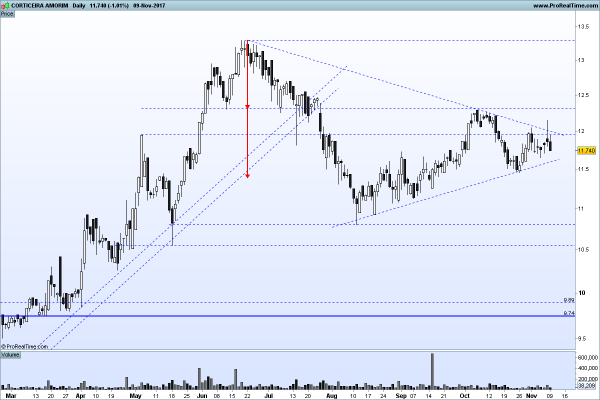 A corticeira está em correcção de curto prazo e já abaixo da MM200 e perto de 2 suportes fundamentais