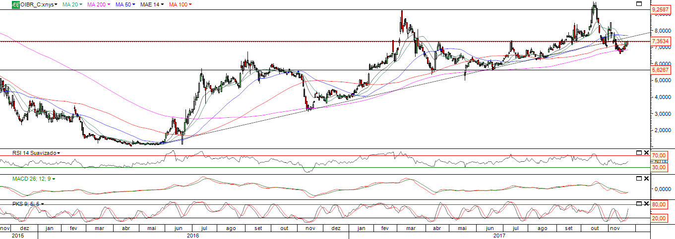 Gráficos - OIBRC_ADR NYSE base diária , abaixo da LTA de longo prazo / OIBR3 base semanal / OIBR3 base diária