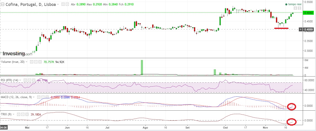 A Cofina veio fechar o Gap nos 0,418 e agora entrou no canal ascendente que levará a maximos do ano.