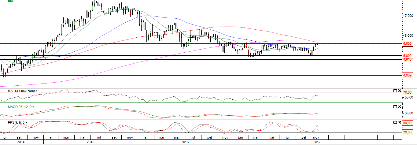 contudo vamos acompanhando se fecha em valores muito acima 5,26 que será o topo do canal descendente...