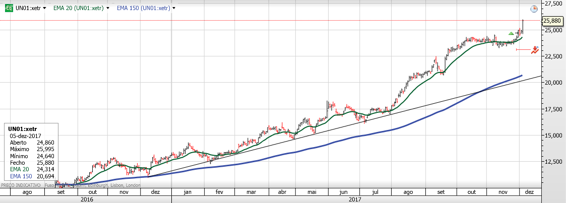 Mais um título que deu entrada e com força. Risco de 6,5%. Irei subir o stop para fundos mais altos se correr como espero.
