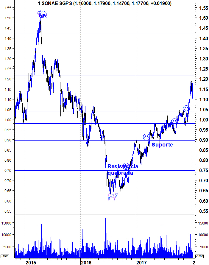 Se o passado se repetir pela terceira vez (dec2017) a cotação poderá atingir a zona dos €1.80 - €2.00.