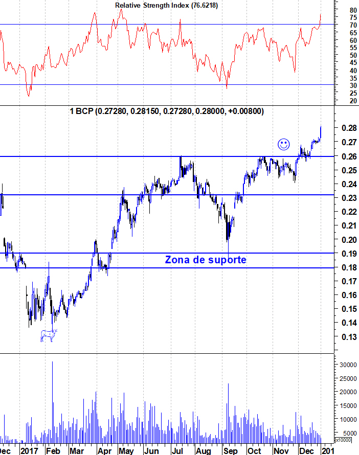 Como nos últimos dias de Dezembro consolidou nos 0,27€ agora atingiu os 0,28€ creio que uma correção ainda não será para já pois no inicio do ano a tendência do mercado por norma é de subida.