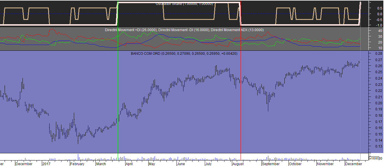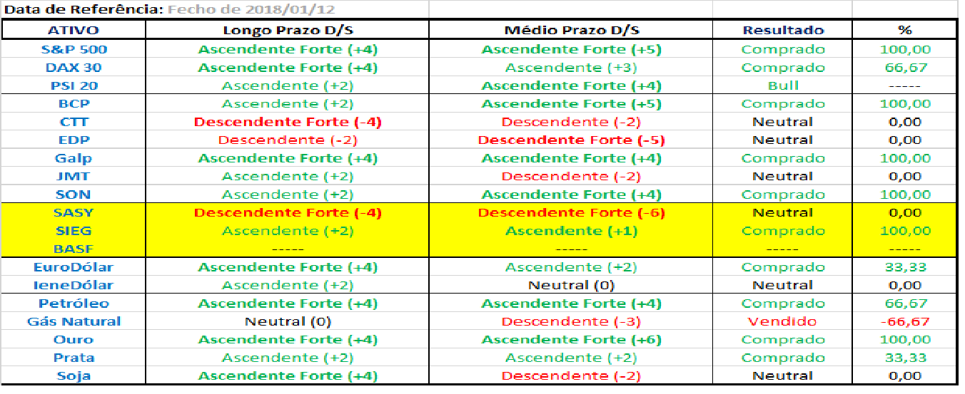 Neste caso estava em espera a BASF para ser analisada, a qual, como podem observar, já satisfaz os requesitos conclusivos do conjunto dos sistemas de trading para entrar de imediato na carteira com uma posiçäo longa.