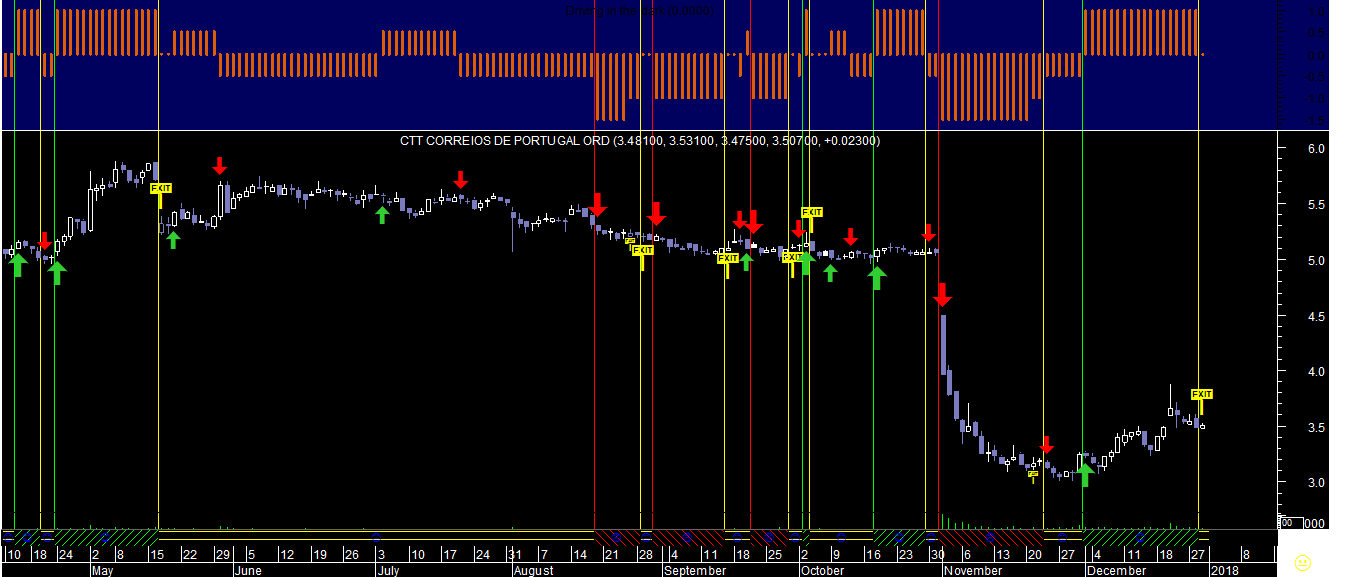 Desta vez acrescentei mais uma açao à lista habitual: CTT, à qual deixo um primeiro gráfico dum sistema de trading que nao aconselha ainda compras à presente data.