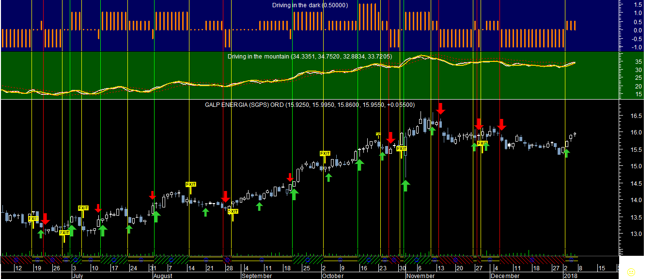 Aqui o objetivo resume-se a tentar aguentar o máximo tempo possível no sentido da tendência dominante que os indicadores väo validando, apenas isso, atitude que mental ou emocionalmente é muito complicado manter uma vez que em termos humanos a nossa forma de pensar é em geral muito diferente: temos muita vontade de estar dentro quando estamos fora e vontade de saltar fora quando estamos dentro!