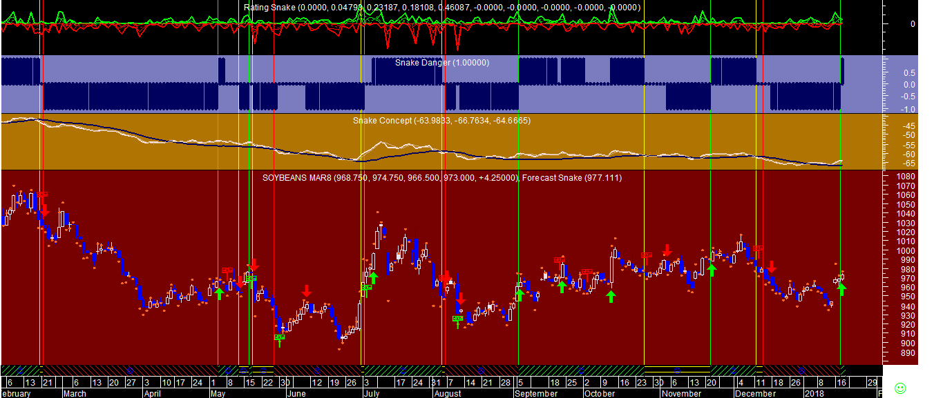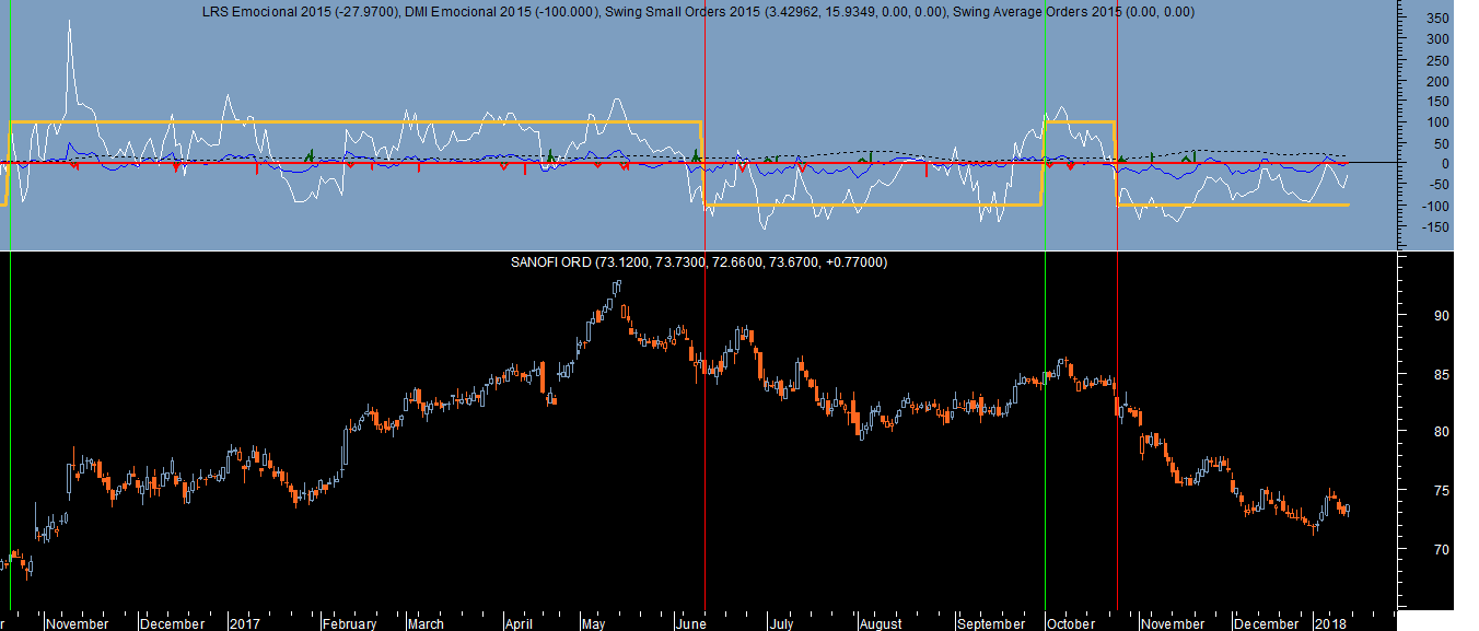 Quando essas direçöes säo sensivelmente horizontais essa mini-tendência é considerada neutral e aí as regras da inter-relaçäo das linhas brancas e amarela com as vermelhas é totalmente diferente das alturas em que a mini-tendência é direcional (ascendente ou descendente), uma vez que nestes casos as linhas branca e amarela podem fazer o que quiserem mas o sinal é gerado apenas pelo sentido marcante da mini-tendência. Durante as fases de mini-tendência neutral, as tais cujo início é marcado por uma verticalamarela, as compras (vendas) säo disparadas maioritariamente quando uma das linhas branca e amarela vira para o sentido ascendente (descendente) mas se encontram ambas abaixo (acima) do espaço definido pelas linhas tracejadas vermelhas.