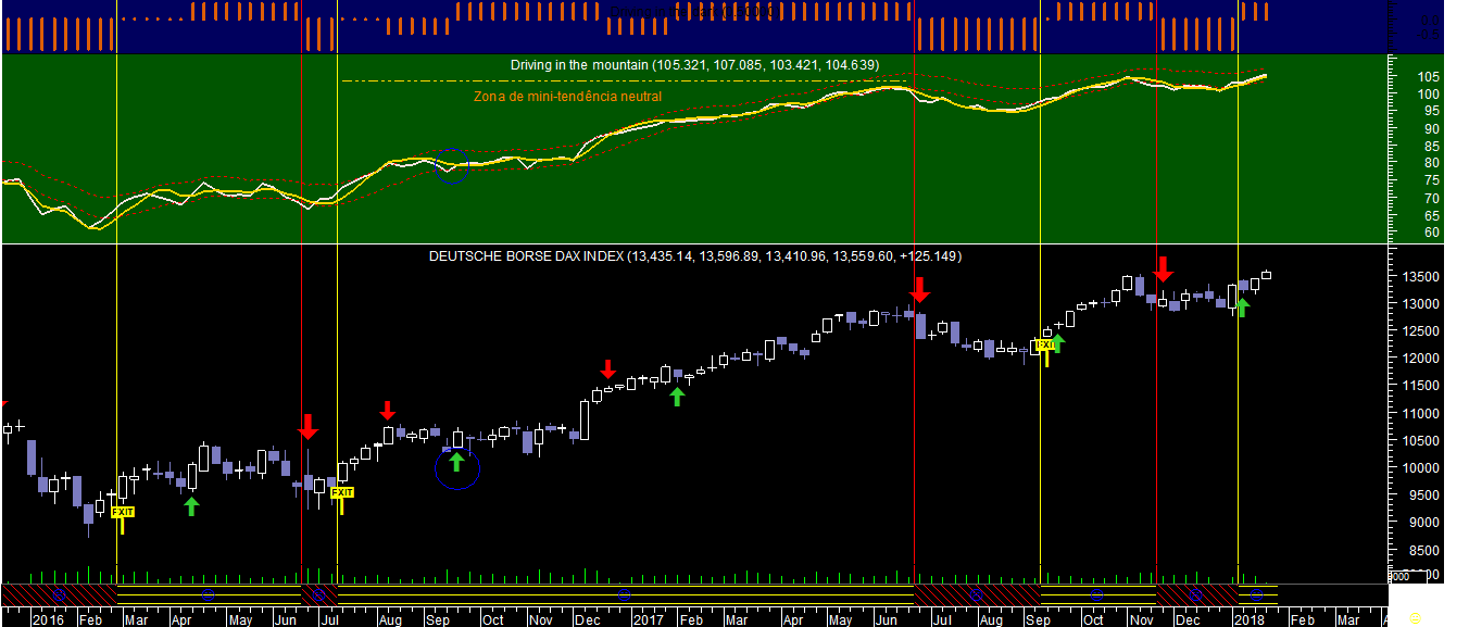 Repara no gráfico abaixo do DAX semanal nos indicadores do meio de fundo verde.