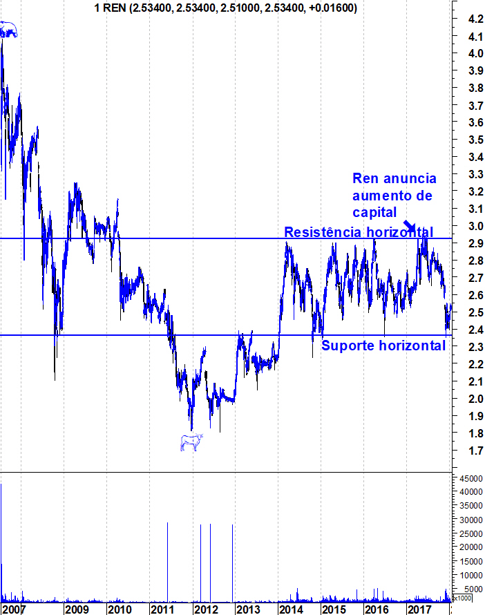 Os problemas que o regulador do sector impôs também condicionaram bastante esse AC. De qualquer das formas, penso que o efeito desse AC já foi bem descontado na acção que segue agora o seu caminho. Tecnicamente mantém-se naquele monótono e largo intervalo entre os 2,35 e os 2,95 euros, num empate técnico entre ursos e touros nos últimos 4 anos, mas quem tem conseguido comprar perto do suporte e vender junto à resistência tem surfado bem uma das mais monótonas acções da Bolsa portuguesa.