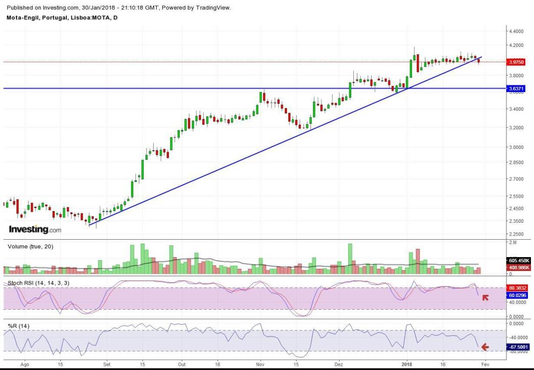 Tal como na Teixeira Duarte podemos estar em presença de uma forte correcção, embora esta cotada tenha mais diversificação geográfica que a TDU.
