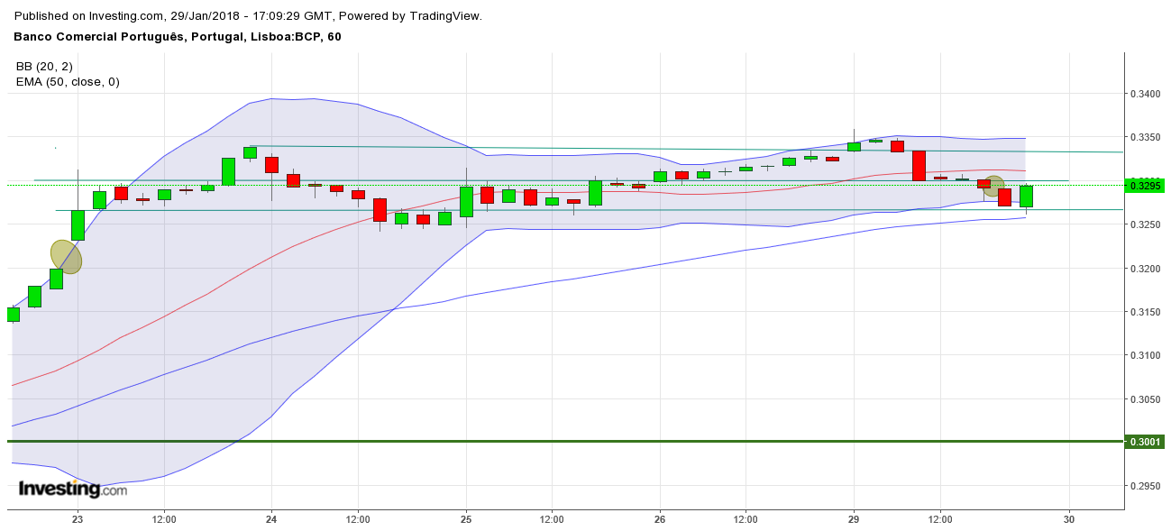 Se estou dentro ou fora? Tento estar sempre dentro neste Bull do BCP. Portanto, dentro com o meu stop nos 0,325X para reentrar mais em baixo se for essa a vontade do mercado.